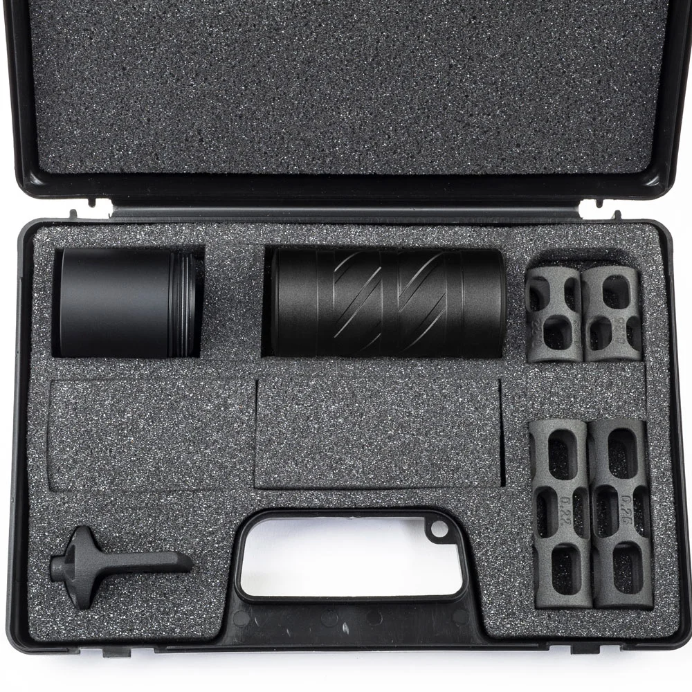 The Stealth Silencer Pro is only available as part of a kit. The kit comes in a foam-filled, hard polypropylene case, with a lid marked ‘0dB’.